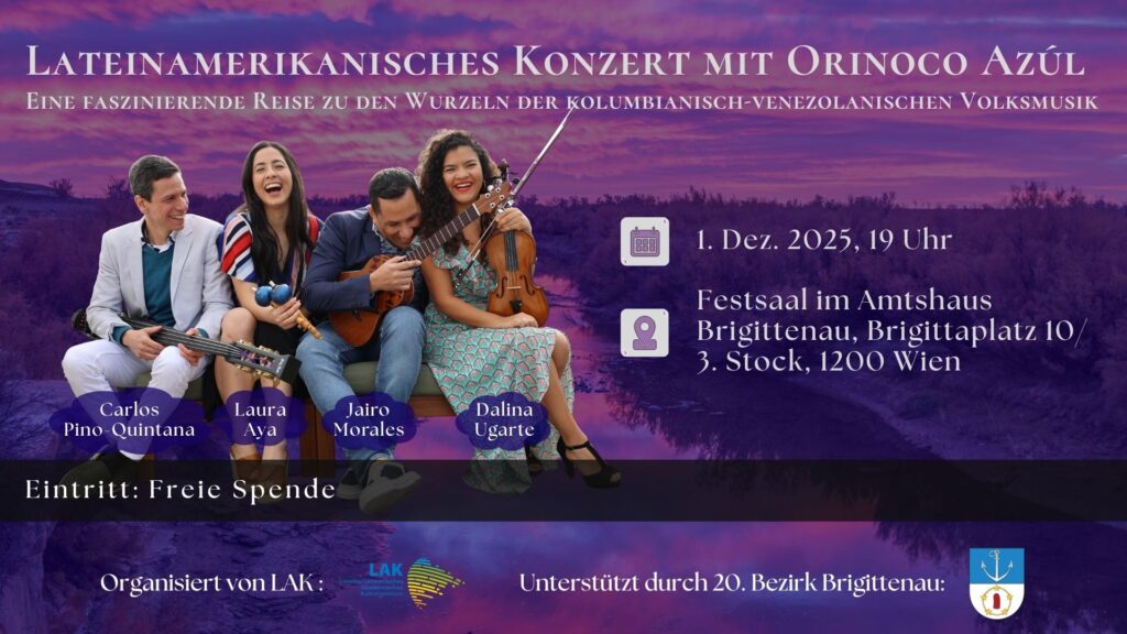 Jairo Morales: Venezolanischer Sänger, Songwriter, Gitarrist und Cuatro-Spieler. Er bereichert die Musikszene in Österreich und Europa mit einer warmen Stimme, die afro-venezolanische und karibische Rhythmen mit modernen Klängen verbindet.